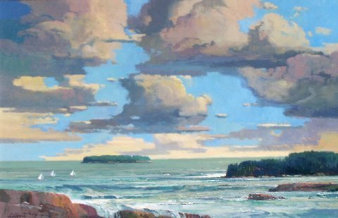 No matter how many times Laurence Sisson paints the landscape he loves and cherishes. Each observation of the surging tides and rhythmic waves that pound against the Maine coast or the expansive desert floor of northern New Mexico is a fresh and vibrant experience that excites his imagination and fuels his aesthetic drive.