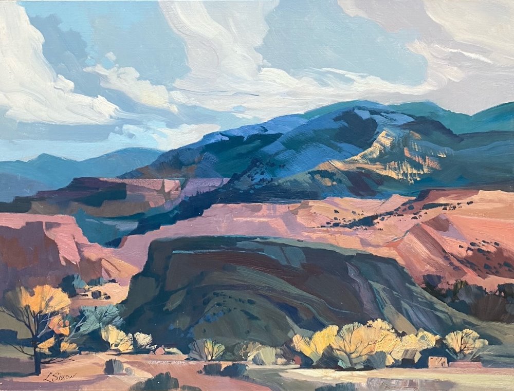 Sisson also loves to immerse himself in the sparse beauty of southwestern landscapes. He's intrigued by the rhythmic shapes of New Mexico and Arizona mesas, hills, valleys, and desert plains and by the movement of cloud shadows crossing the mountains and glistening canyon walls. A resident of New Mexico for more than 20 years, he's begun to observe a similarity between the natural forms indigenous to his New England childhood home and the mesas and vast open spaces surrounding him today.